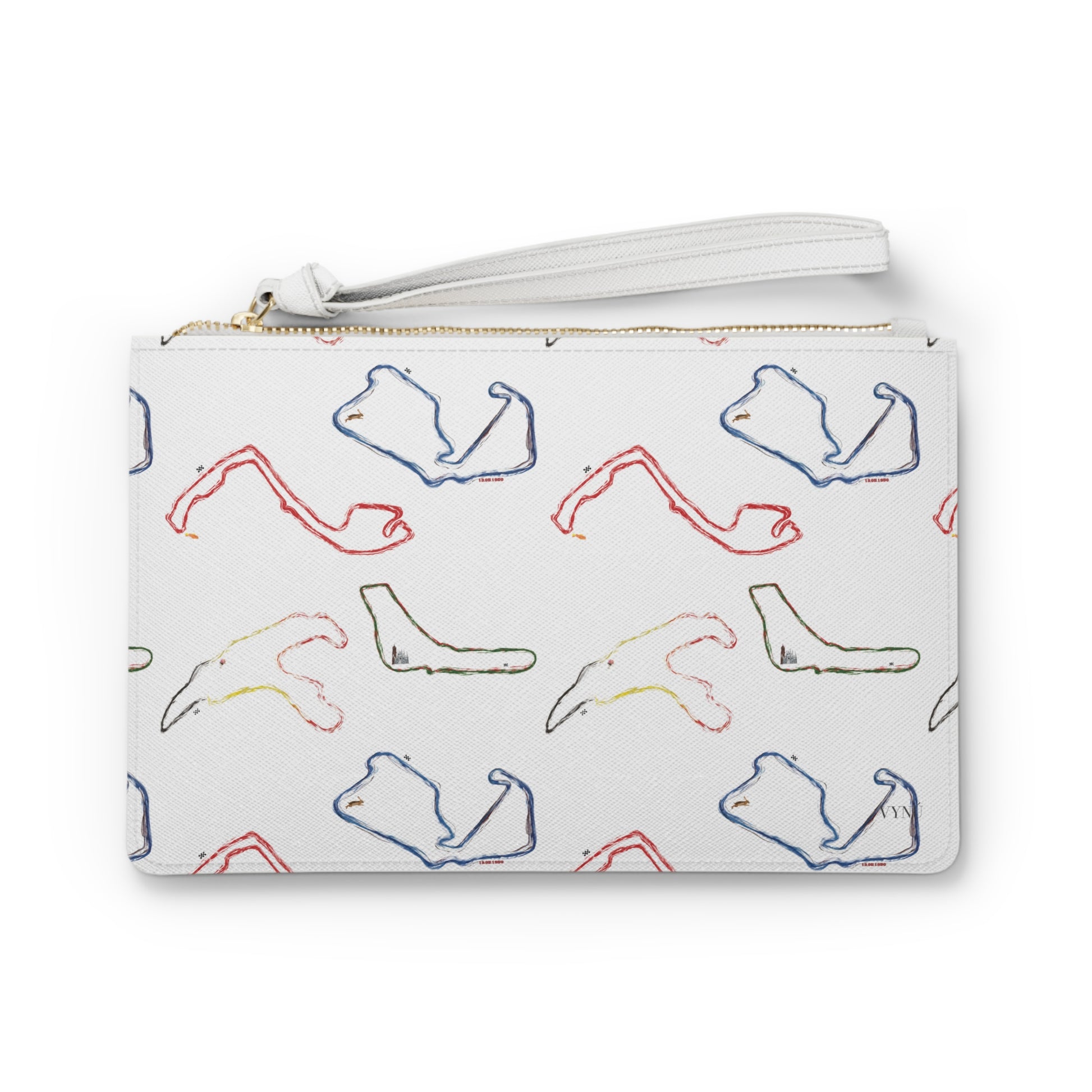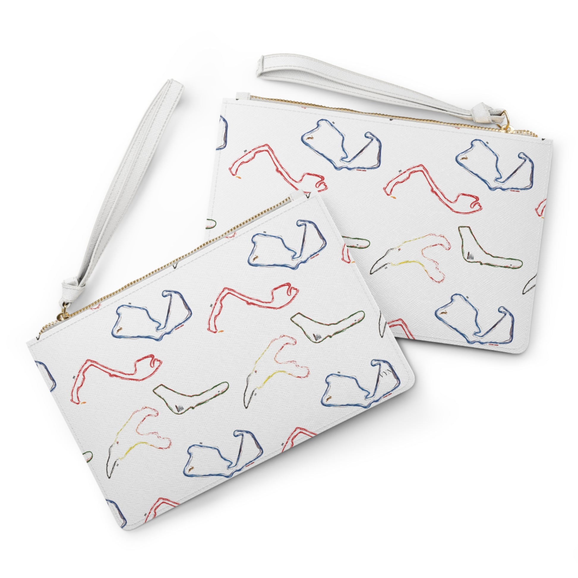 A slim, hands-free clutch that feels both playful and polished. The textured Saffiano finish and gold zipper catch the light while a soft wrist strap keeps your hands free for coffee runs, gallery nights, or quick weekend walks. Inside, two compartments and a small pocket keep cards, keys, and a phone neatly separated against a black lining. The repeat sketch pattern in soft, watercolor-like hues gives the bag an artistic, whimsical vibe — easy to carry with denim or a simple dress when you want a splash of color without fuss.