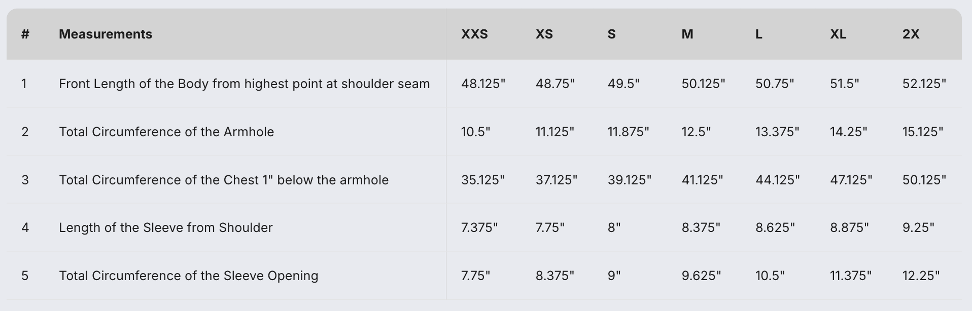 Size Chart: