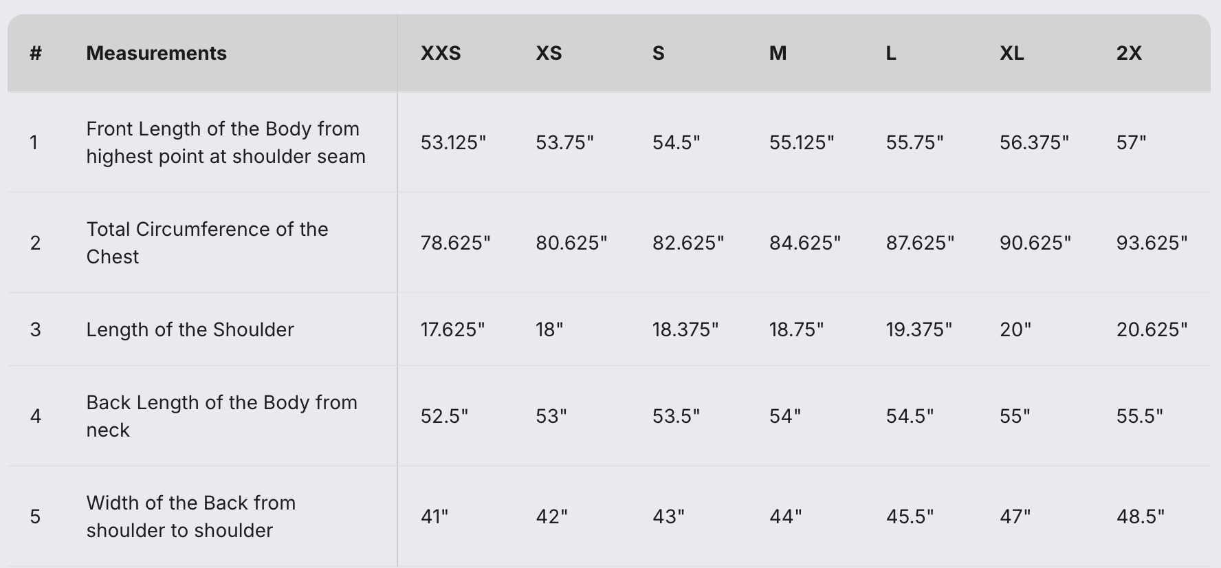 Size Chart: