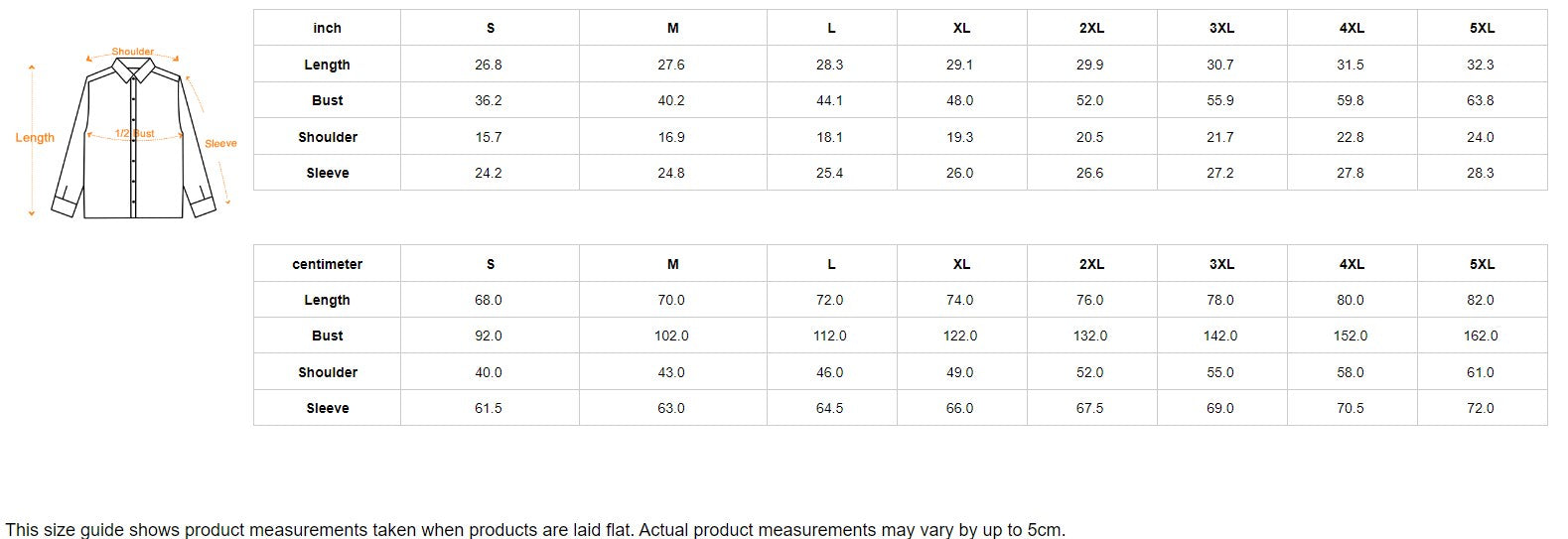| centimeter | S | M | L | XL | 2XL | 3XL | 4XL | 5XL |